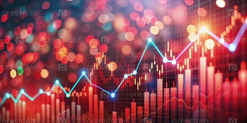 Красный график фондового рынка на абстрактном фоне, подчеркивающий колебания тенденций в финансовых данных во время торговой сессии