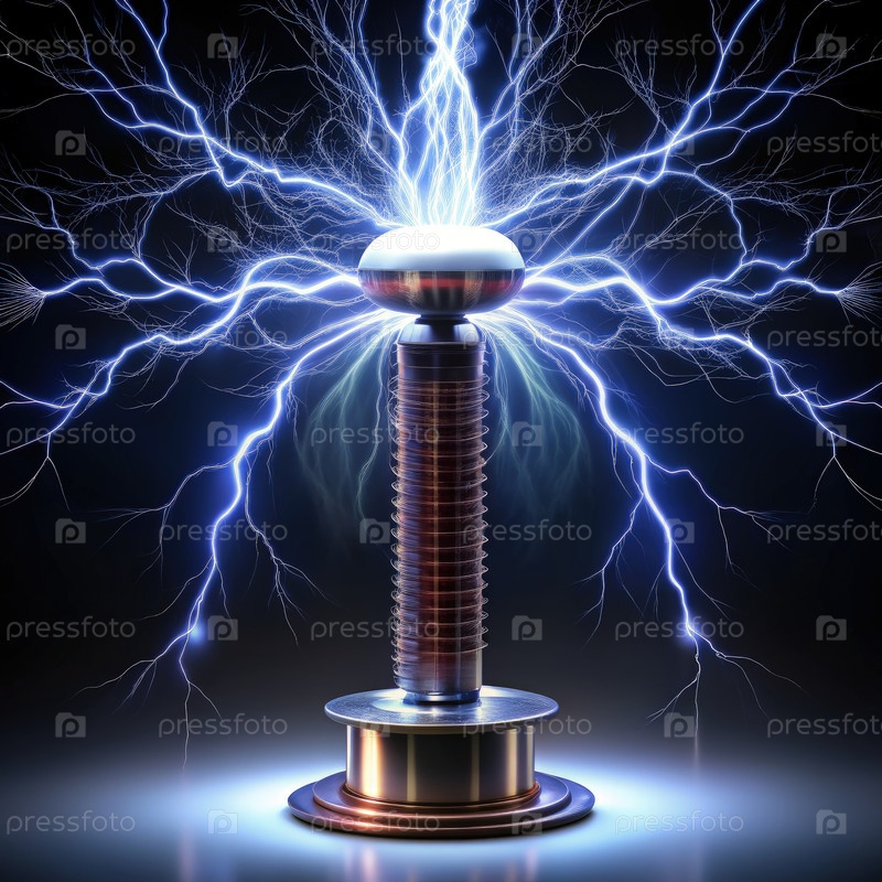 Реалистичная катушка Тесла, производящая высоковольтные электрические разряды ночью