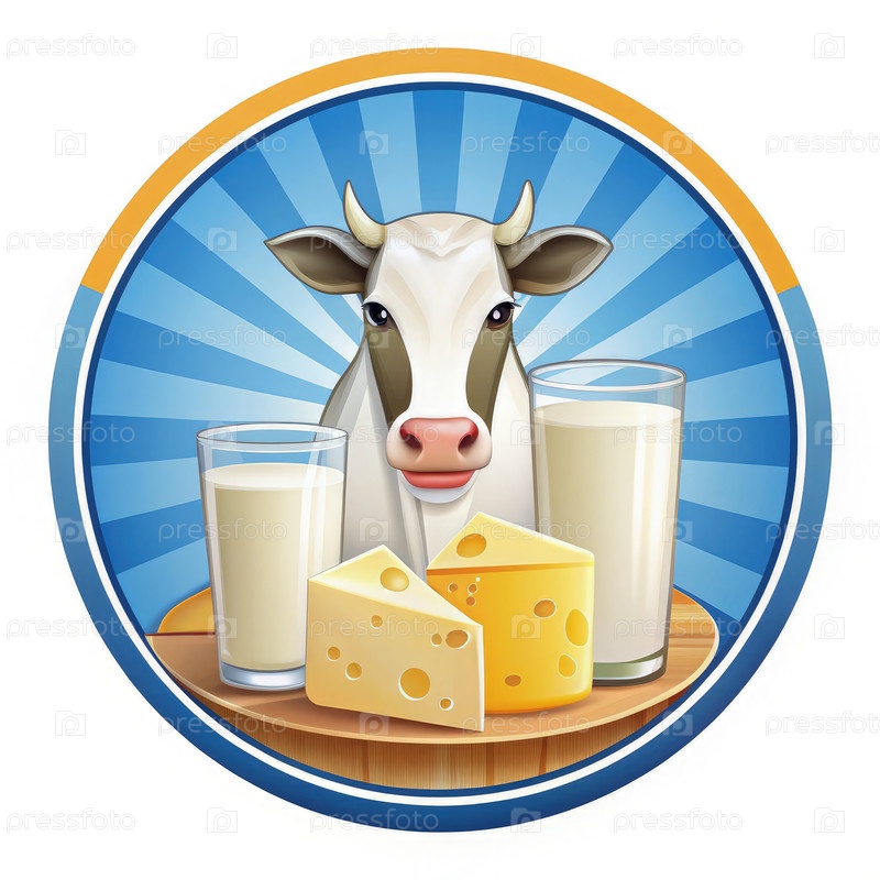 Дизайн логотипа для молочного рынка с молоком, сыром и коровой