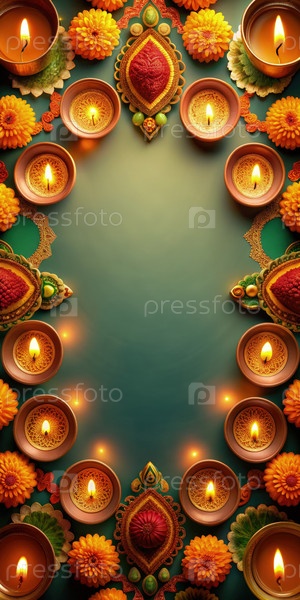 Декорированная обстановка Дивали с диями и цветами маригольды для празднования