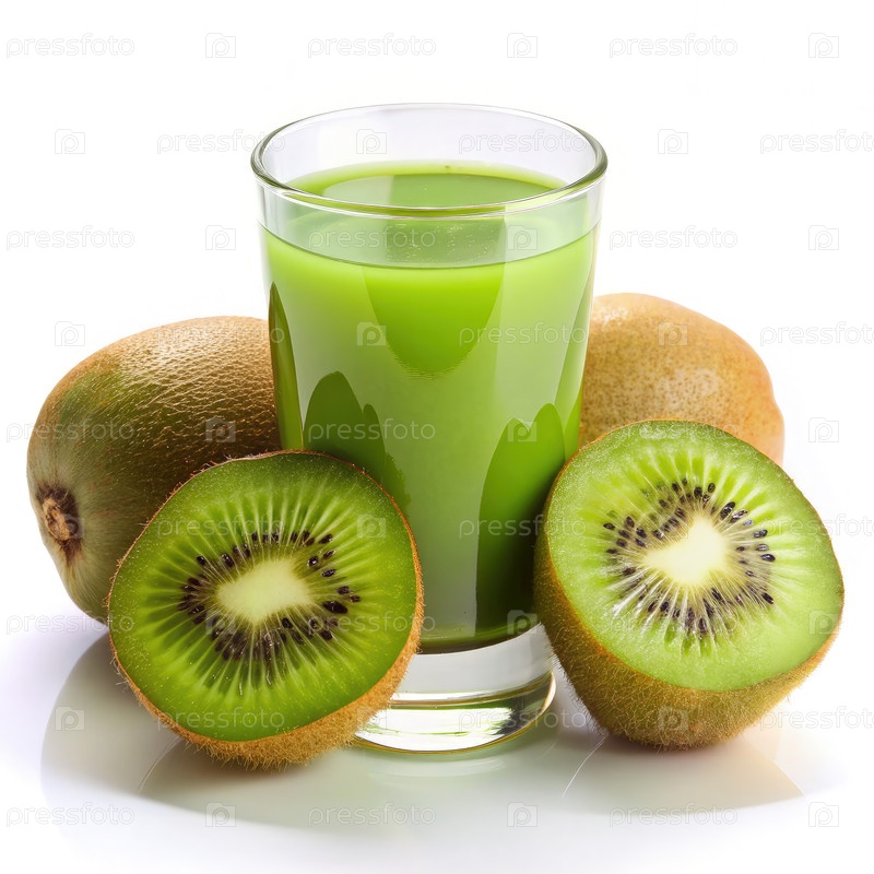 Свежий киви и его сок изолированы на белом фоне