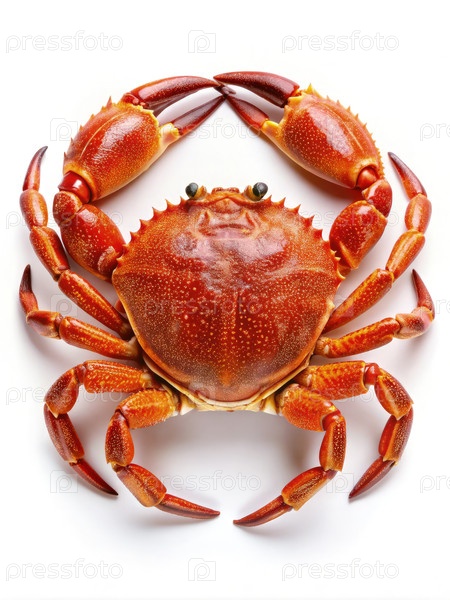 Красный краб на белом фоне, демонстрирующий яркие цвета и детали