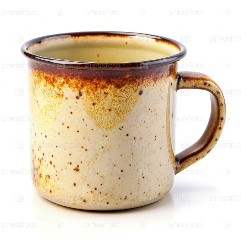 Носящаясь эмалированная кружка с деревенским очарованием на стандартном белом фоне