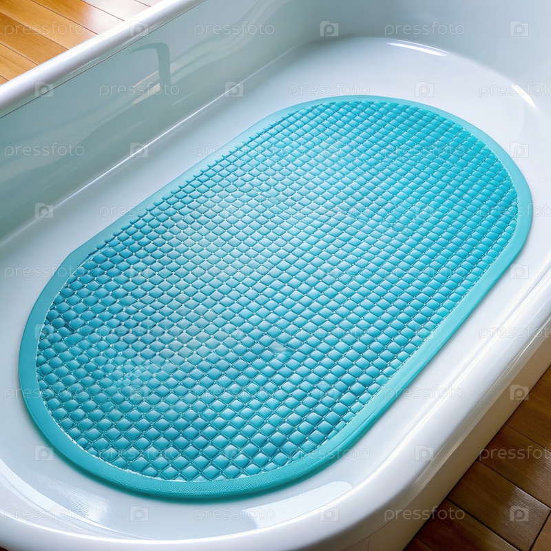 Овальный силиконовый коврик для ванной помещен в чистую, яркую и расслабляющую обстановку бани