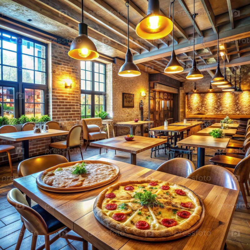 Внутри уютного ресторана-пиццерии с свежей пиццей и теплым освещением