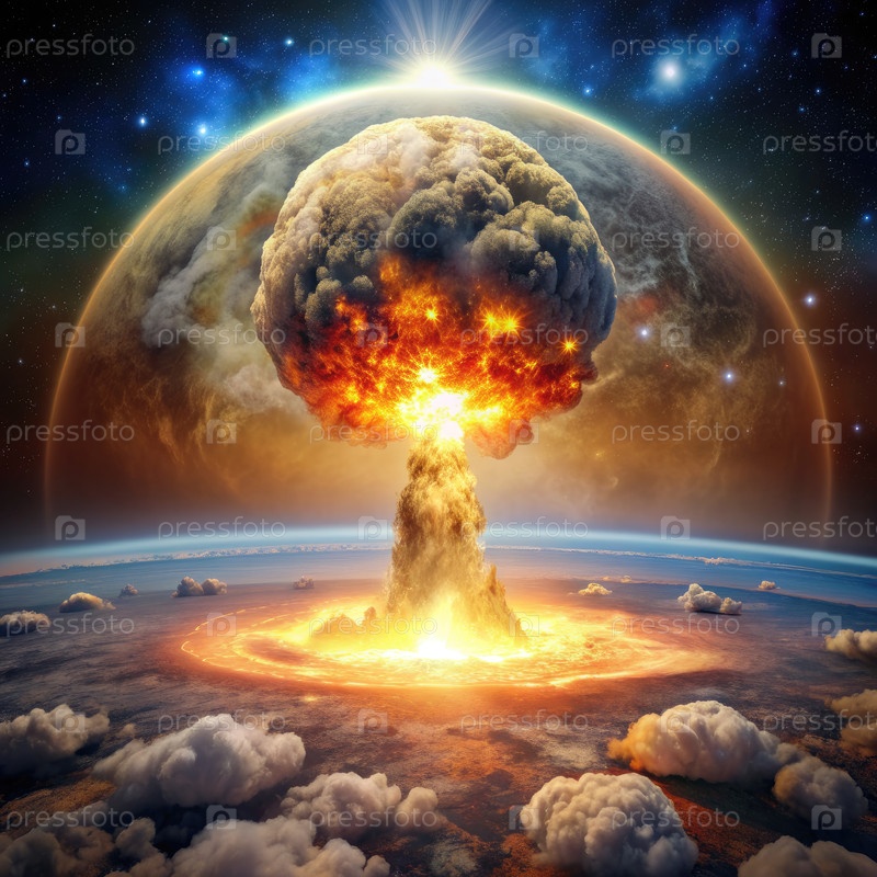 Масштабный ядерный взрыв над планетой Земля запечатлен на потрясающем космическом фоне