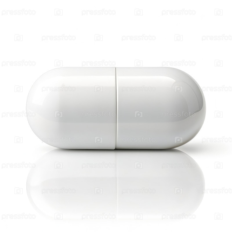 Белая капсульная таблетка, изолированная на чистом фоне для фармацевтического использования и медицинских приложений
