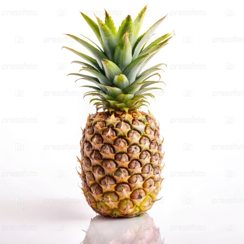 Целый ананас на белом фоне в стандартном дисплее по шкале x. Генеративный ИИ