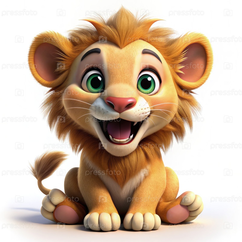 Милый и игривый львенчик, счастливо смеющийся в яркой, радостной обстановке