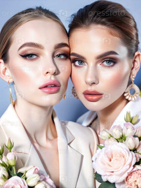 Стильные женщины с натуральным макияжем, демонстрирующие масштаб в современной обстановке
