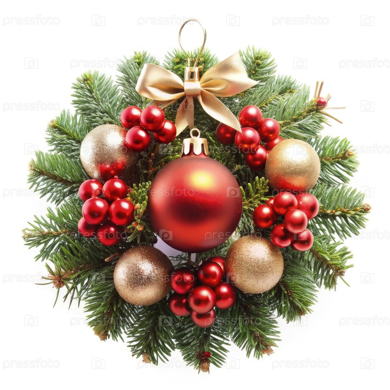Красиво выполненное рождественское украшение с праздничным венком, украшенным красными и золотыми орнаментами, идеально подходит для праздничных торжеств и домашнего декора