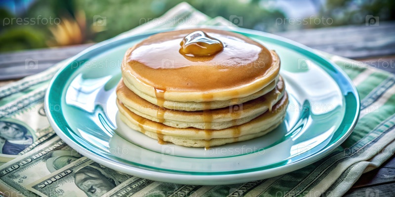 Пушистые блины с сиропом, подаваемые на тарелке в уютном месте для завтрака
