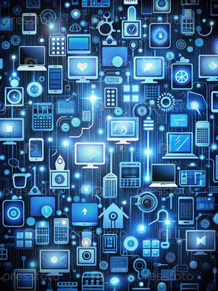 Абстрактные цифровые обои на тематику технологий с разнообразными значками и узорами. генеративный ИИ