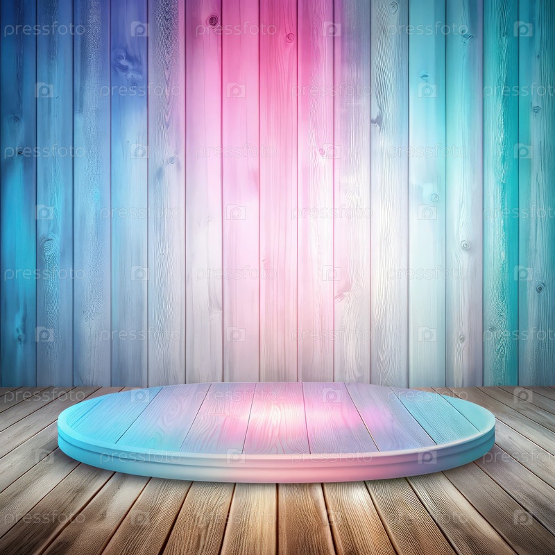 Пастельная градиентная сцена с голубыми и розовыми оттенками в деревянной обстановке