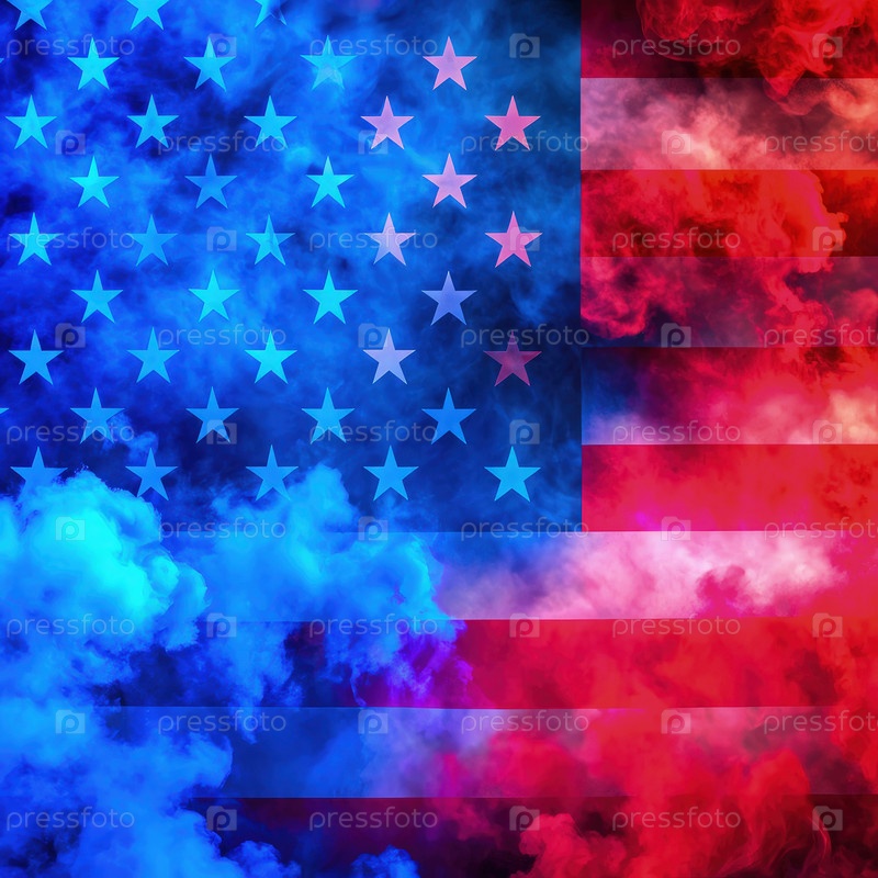 Дизайн флага США с дымящимся синим и красным фоном