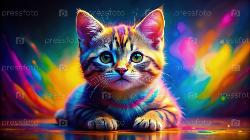 Красочное котенок играет среди ярких красок в светлой обстановке