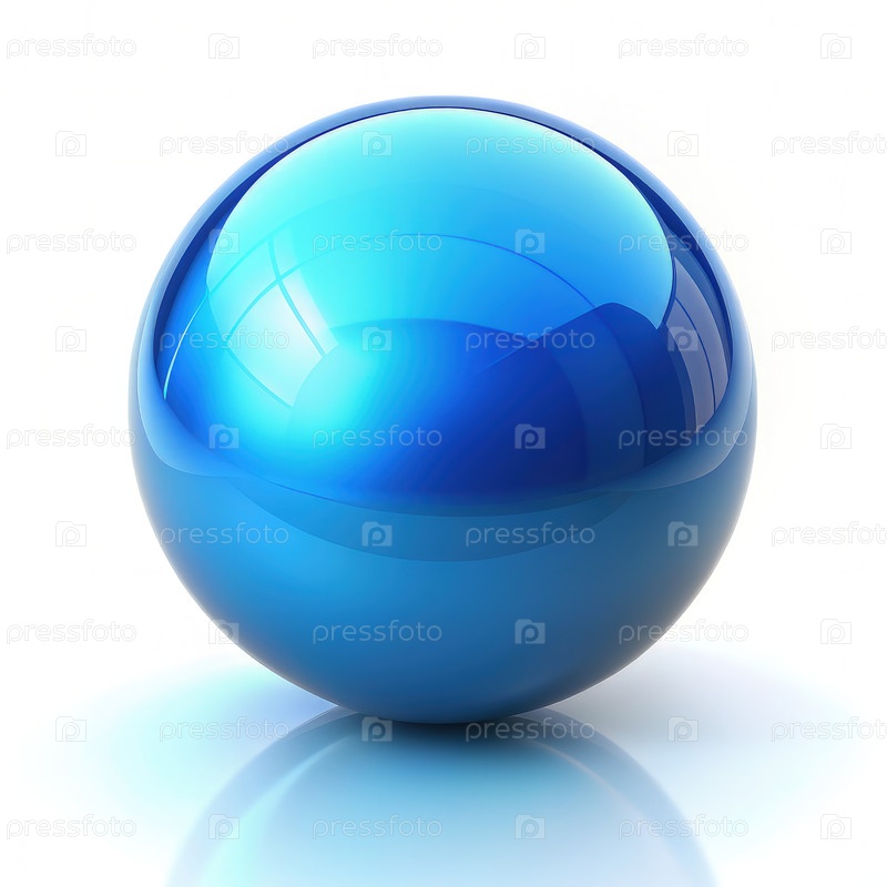 Живая абстрактная голубая сфера на хрустящем белом фоне с отражающей поверхностью