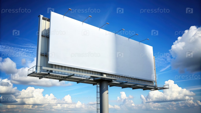 Пустой макет рекламного щита под чистым голубым небом с разбросанными облаками