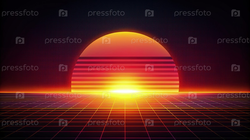 Профессиональный черный векторный фон с ретро-дизайном заката. генеративная ИИ