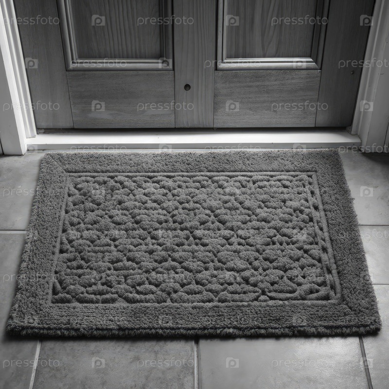 Простой серый коврик, размещенный у входа в дом