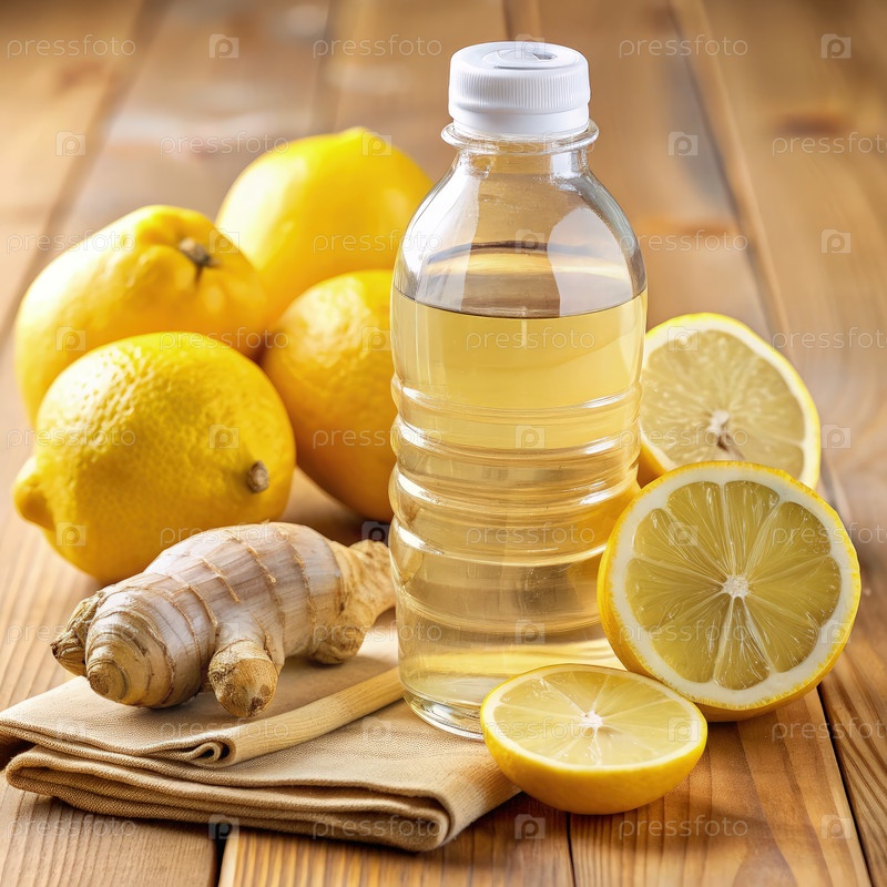 Освежающая лимонная вода с имбирем и медом на деревянном столе