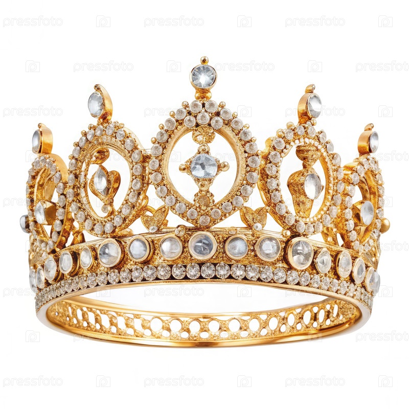 Блестящая золотая тиара со сложными узорами и сверкающими камнями