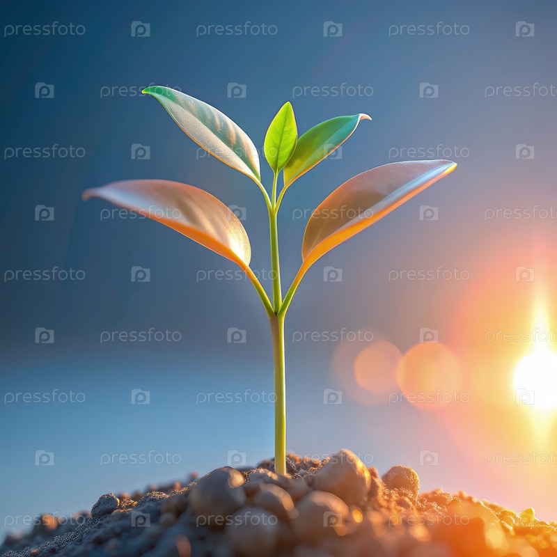 Молодые растения прорастают, выходя из почвы под теплым солнечным светом