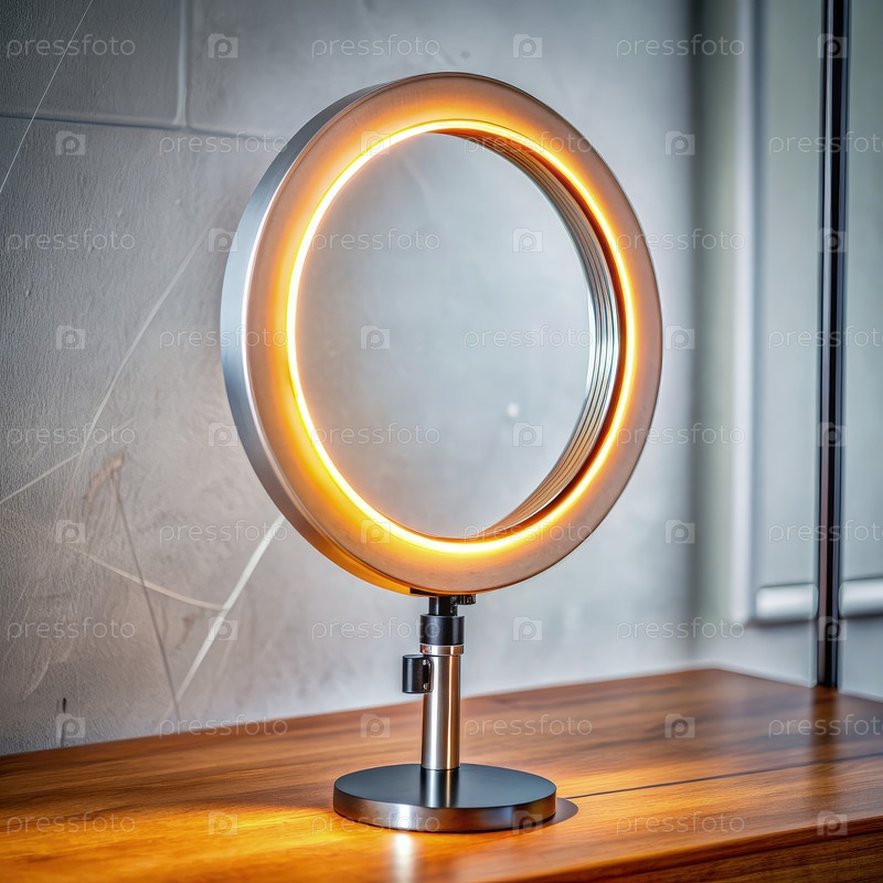 Утонченная современная лампа с изогнутым дизайном на деревянном столе в современном пространстве
