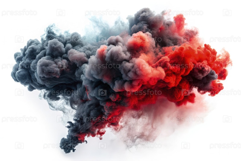 Абстрактные облака черного и красного дыма, вращающиеся вместе в динамических моделях на белом фоне