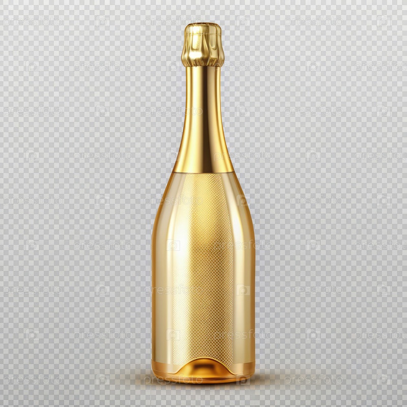 Золотая бутылка шампанского на прозрачном фоне для праздничных случаев