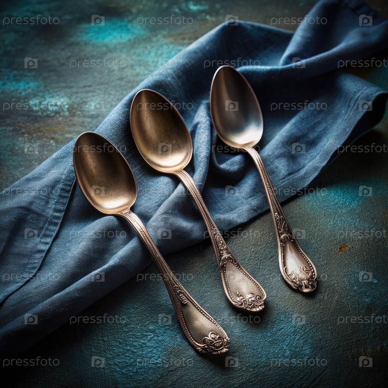 Элегантные серебряные ложки расположены на темно-синей скатерти со стандартной шкалой