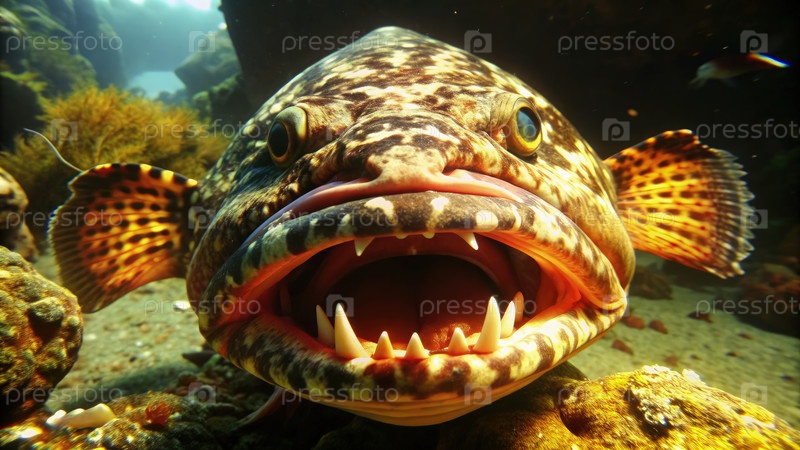 Гигантский журавль, демонстрирующий зубы в спокойной подводной среде обитания