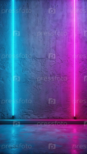 Неоновый мягкий цветный фон на цементной стене с голубыми и розовыми световыми полосами