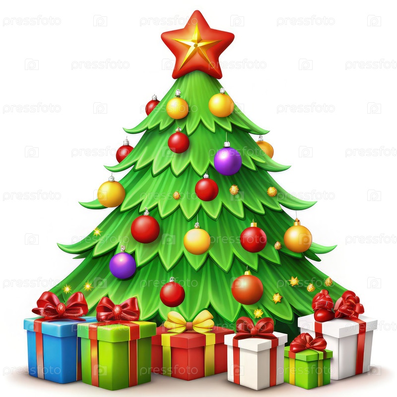 Дерево украшено орнаментами и подарками для праздничного сезона