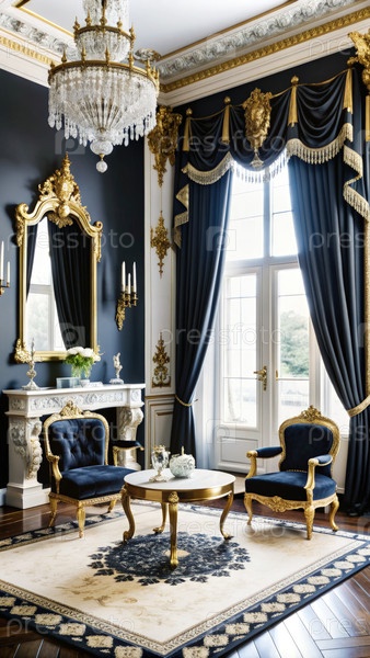 Элегантная викторианская гостиная с украшенным декором и естественным светом