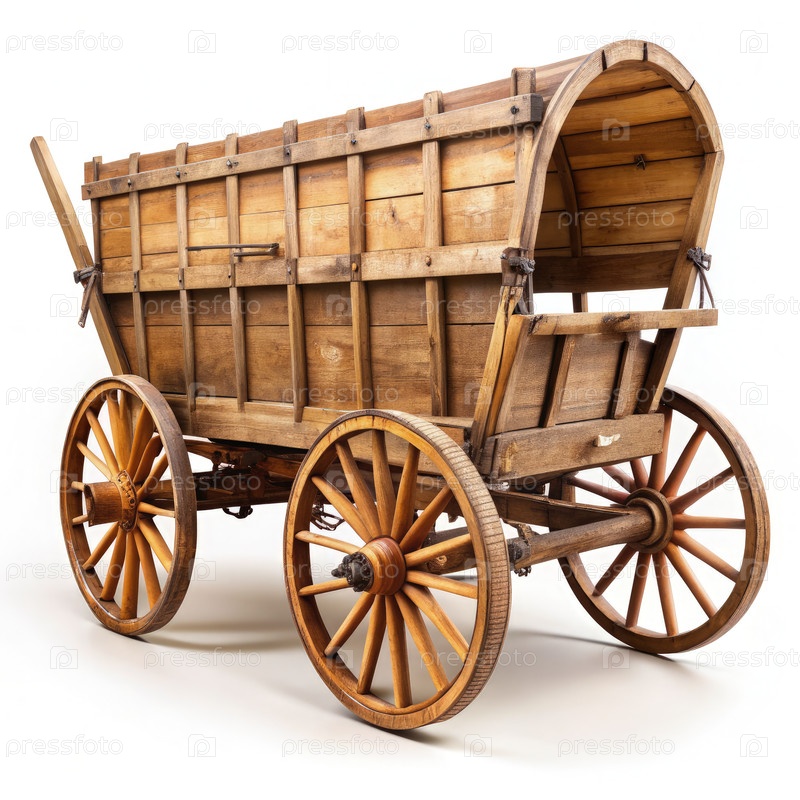 Старый деревянный вагон на белом фоне, демонстрирующий старинное мастерство