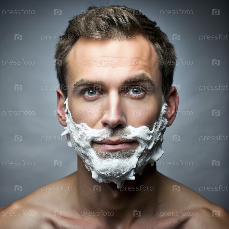 Мужчина наносит по лицу пену для бритья в студии, готовясь к уходу за собой