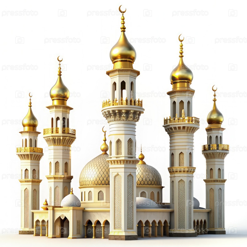 Изолированные минареты с золотыми куполами на белом фоне