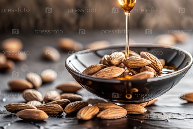 Запечатление процесса попадания масла из измельченных миндалей в тарелку