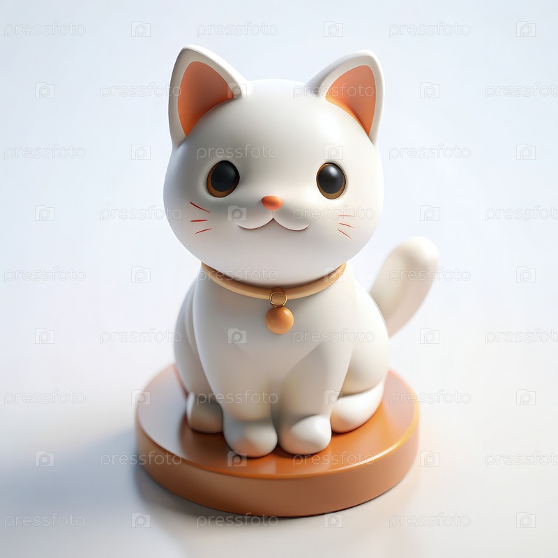 Милая миниатюрная статуя кота в простом дизайне, отображаемая на простом фоне