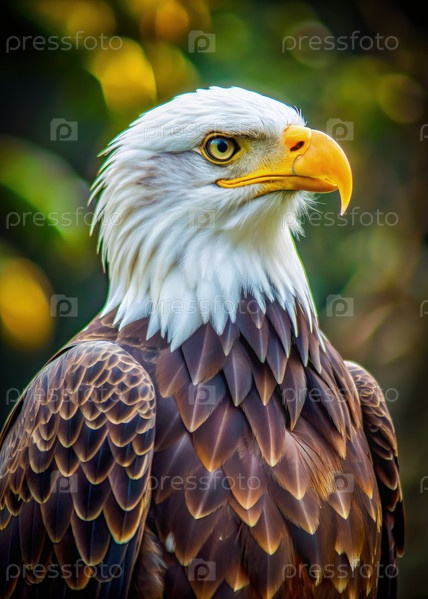 Величественный орел в профиле под мягким естественным светом поздним днем
