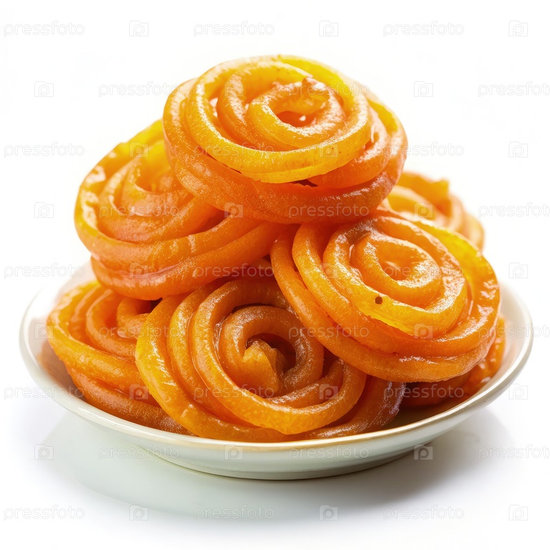 Вкусный джалеби подается на тарелке, демонстрируя сложные спиральные формы