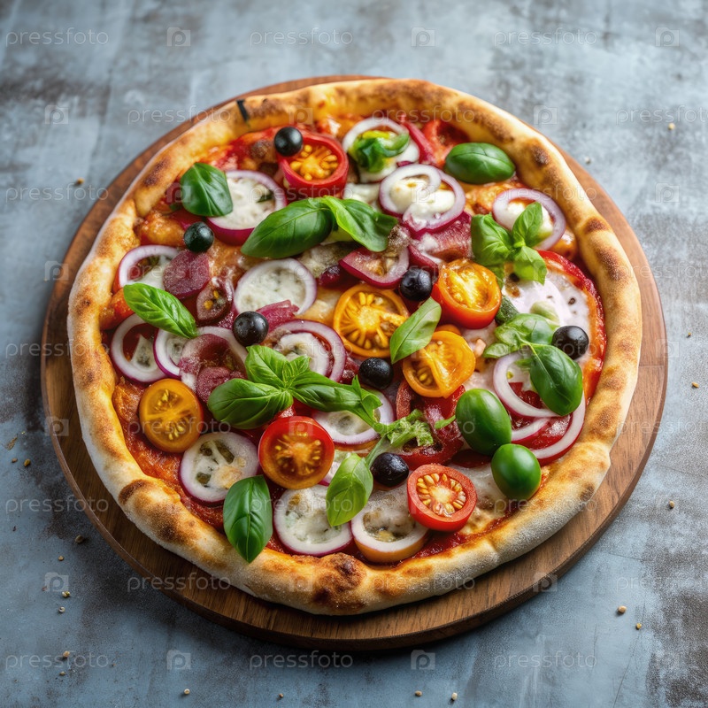 Вкусная пицца с свежими овощами на деревянной доске