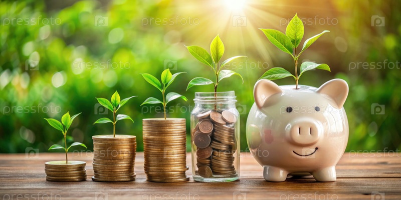 Растущая экономия с помощью растений и монет в естественной обстановке днем. генеративный ИИ