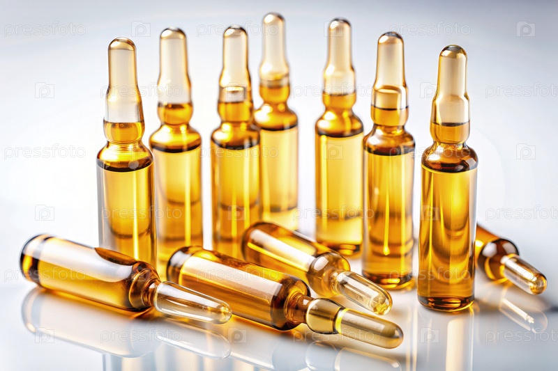 Коллекция янтарных жидких ампул для олиготерапии на чистой поверхности