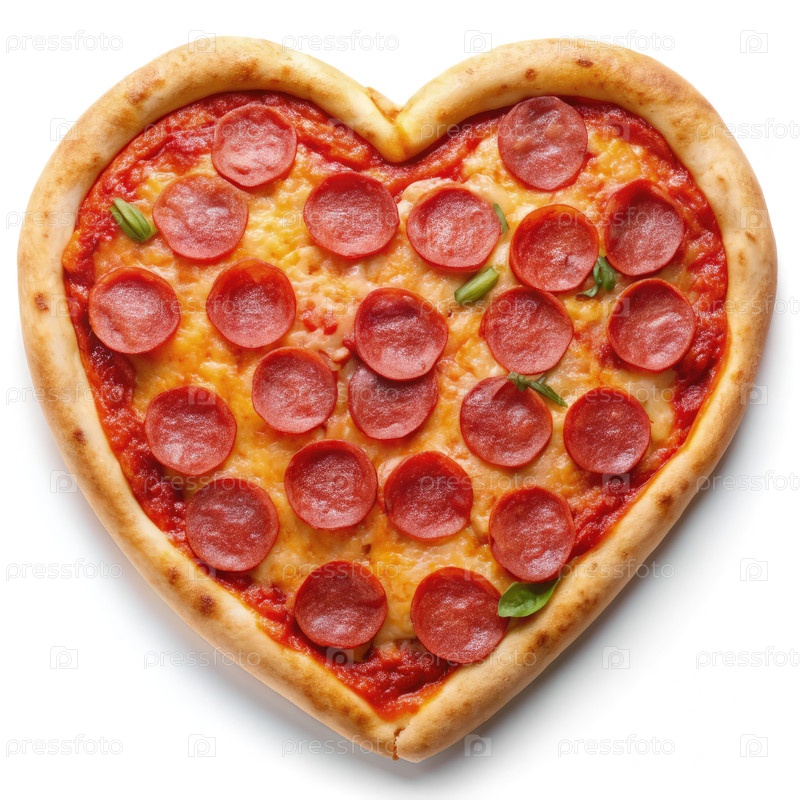 Сердечно-образная пицца с пеперони, рассматриваемая сверху