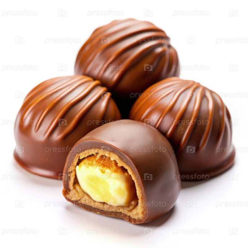 Сладкие миндальные конфеты на белом фоне с шоколадным покрытием