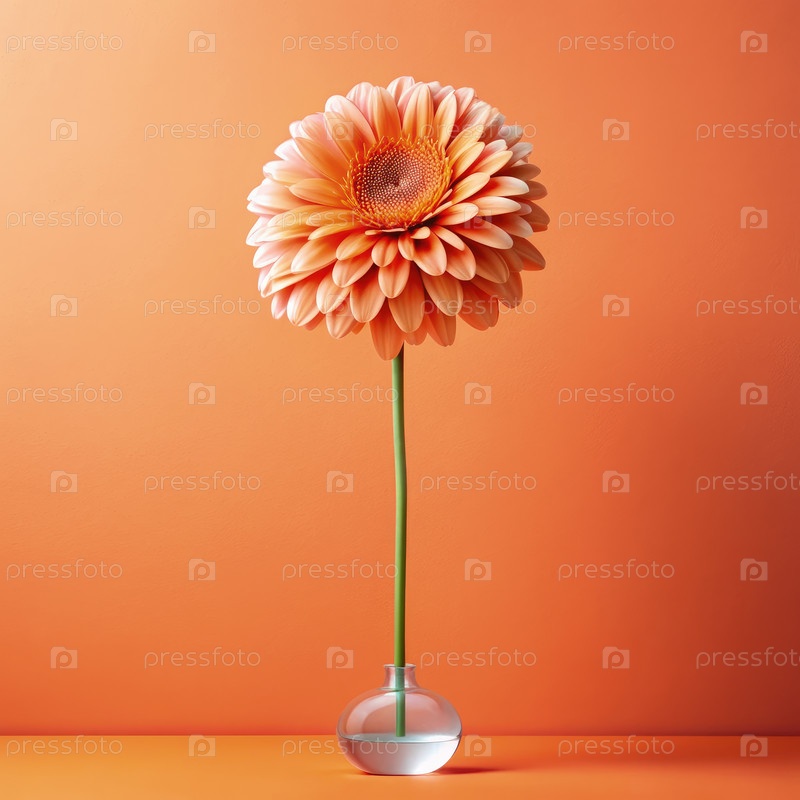 Orange Gerbera Daisy в простой стеклянной вазе на ярком фоне