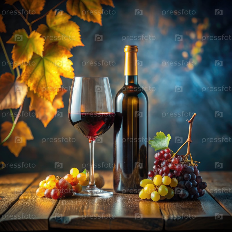 Стакан красного вина в сопровождении винограда внутри уютной ресторанной атмосферы