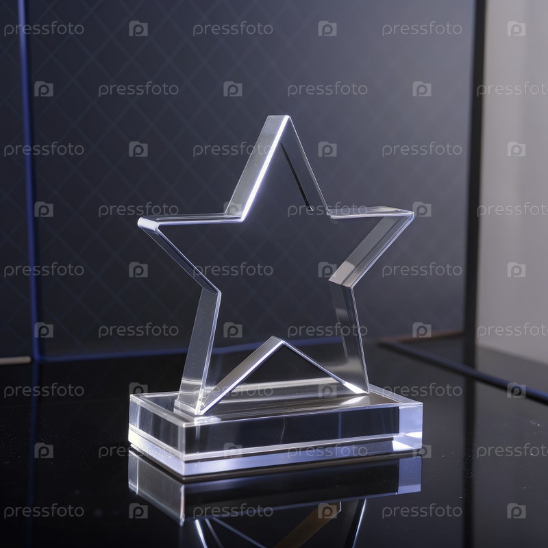 Прозрачный значок награды в форме звезды, отображаемый на черной поверхности